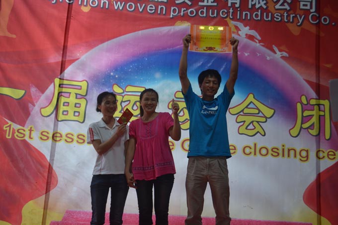 經(jīng)過一個(gè)多月的激烈比賽,于2012年6月20日森榮森杰無紡布袋第一屆運(yùn)動(dòng)會(huì)圓滿結(jié)束了。在此次運(yùn)動(dòng)會(huì)中人事部的直接指導(dǎo)下,全體員工積極參與、合作,順利地完成了秩序維護(hù),監(jiān)督,裁判等各項(xiàng)工作。